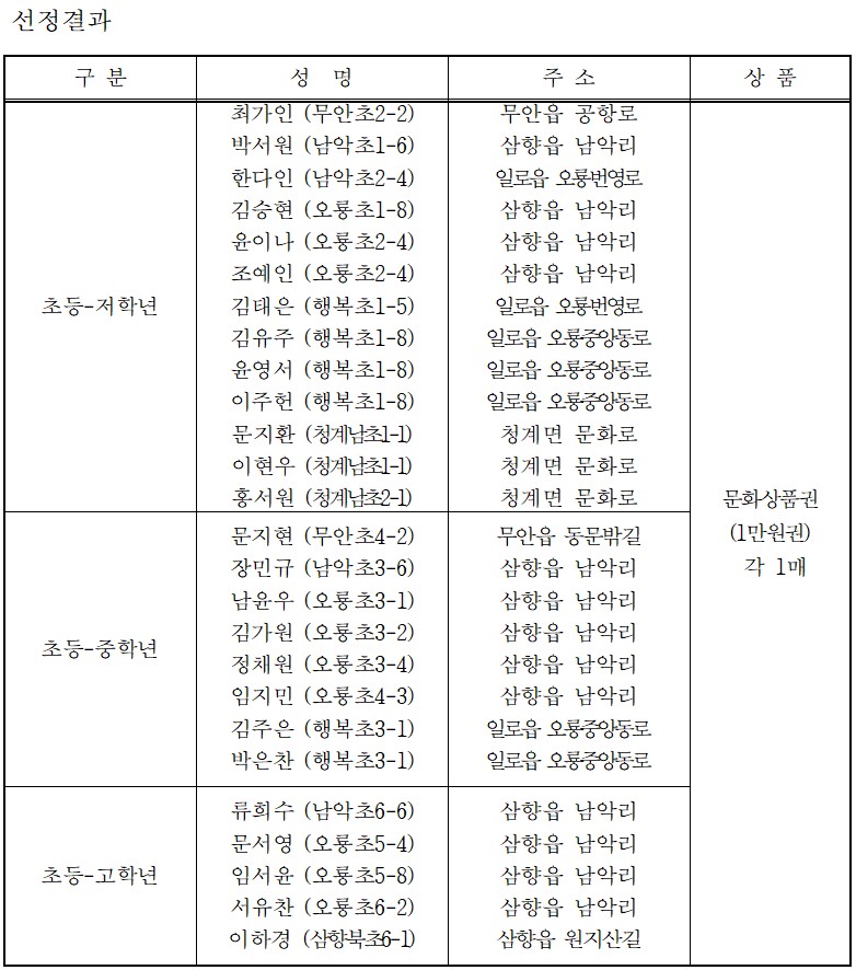 도서관 행사 home 도서관 행사 독서퀴즈 독서퀴즈 독서문화행사독서퀴즈행사일정도서관 갤러리 독서퀴즈 2022년 7월 독서퀴즈 당첨자 안내 조회수 : 11 1. 상품은 직접 수령하시거나 등기발송해 드립니다.2. 문의사항은 061-450-5465로 연락주세요. 목록