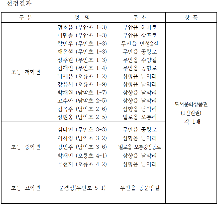 도서관 행사 home 도서관 행사 독서퀴즈 독서퀴즈 독서문화행사독서퀴즈행사일정도서관 갤러리 독서퀴즈 2020년 11월 독서퀴즈 당첨자 안내 조회수 : 11 1. 상품은 직접 수령하시거나 등기발송해 드립니다.2. 문의사항은 061-450-5465로 연락주세요.3. 2020년 11월 독서퀴즈 답안지는 첨부파일을 확인하세요. 목록