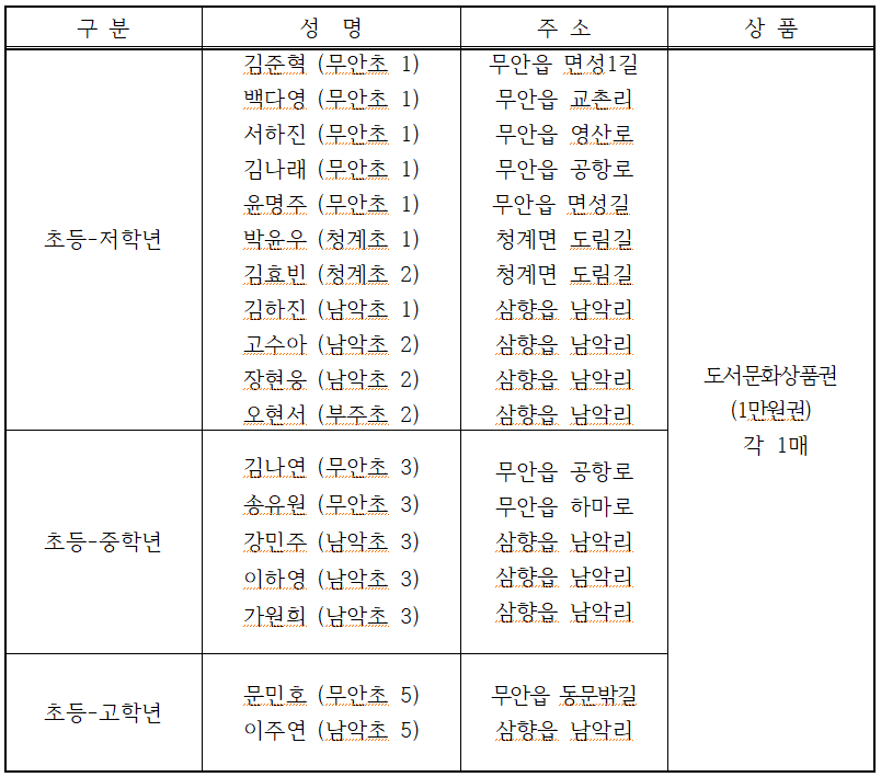 도서관 행사 home 도서관 행사 독서퀴즈 독서퀴즈 독서문화행사독서퀴즈행사일정도서관 갤러리 독서퀴즈 2020년 7월 독서퀴즈 당첨자 안내 조회수 : 10 1. 상품은 직접 수령하시거나 등기발송해 드립니다.2. 문의사항은 061-450-5465로 연락주세요.3. 2020년 7월 독서퀴즈 답안지는 첨부파일을 확인하세요. 목록